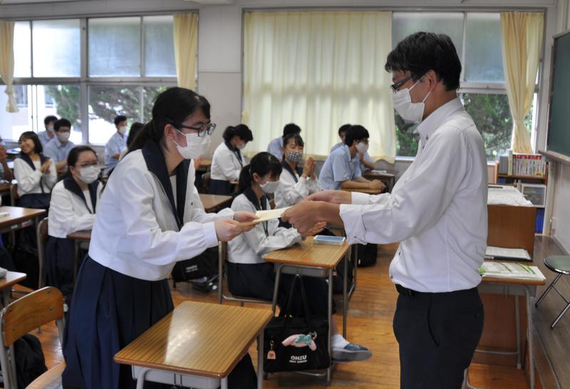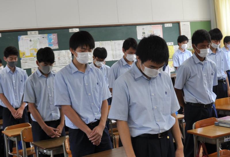 会に先立ち、教頭先生から7月豪雨災害について説明があり、全員で黙祷を捧げました。終業式では、校長先生から熊本県球磨・人吉地域、芦北・八代地域に降った大雨の被害により亡くなられた方に対してお悔やみを申し上げられ、被災され今もなお避難所等で厳しい暮らしを強いられている皆様にお見舞いを申し上げられました。