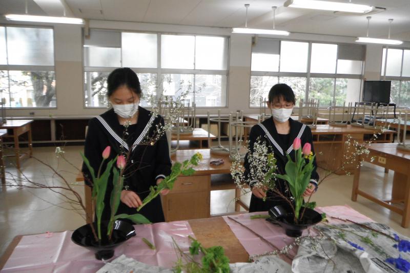 2月19日(金)放課後に、校内花植えボランティアが行われました。3月1日の卒業式に向け、より一層校内が華やかになりました。