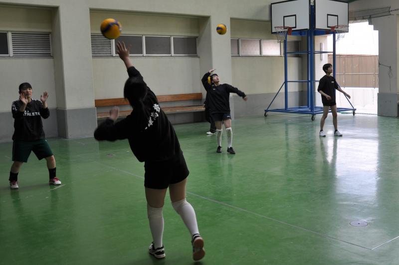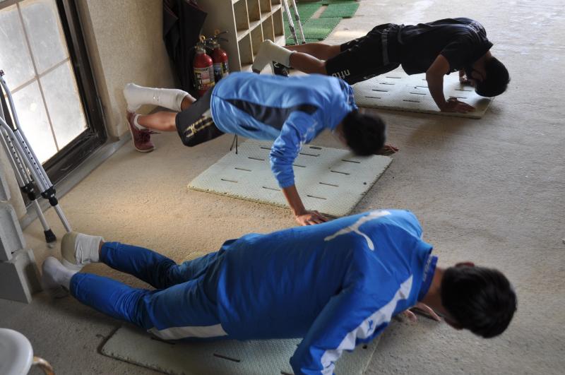 サッカー部とバスケットボール部が朝の自主練習をしています。3年生は、登校後すぐにそれぞれの先生方に添削指導の課題の提出をしています。