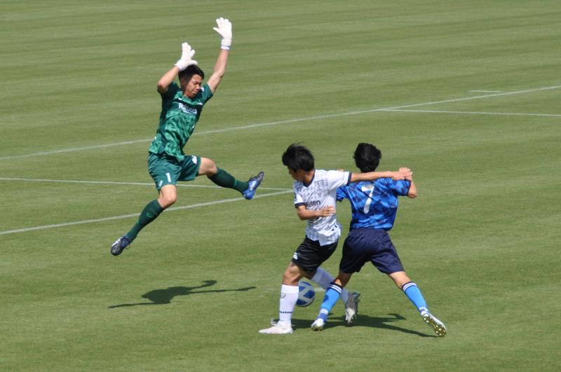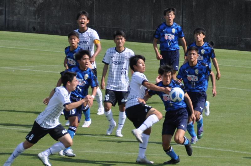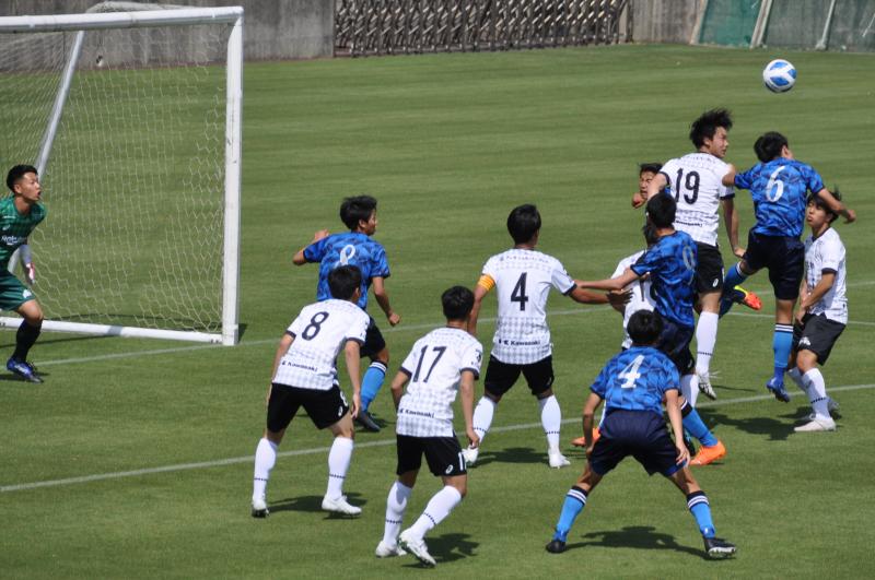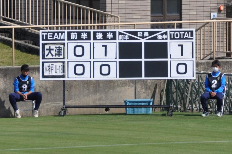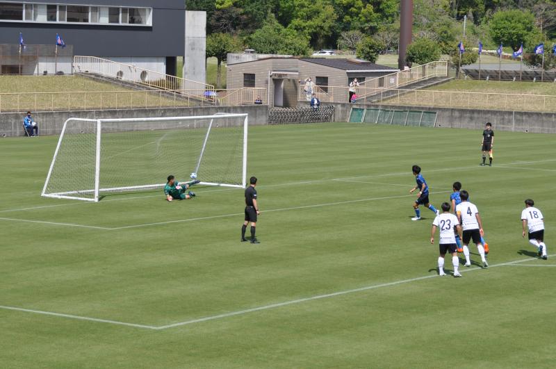 4月25日(日)高円宮杯 JFA U-18 サッカープレミアリーグ第4節大津高校対ジュビロ磐田U-18の試合が、大津運動公園球技場で行われました。前半0対0で折り返し、後半立て続けに2得点をあげました。向かい風が強くなる中、自陣のゴール前にボールを運ばれ、1点を奪われましたが。結果2対1で勝利しました。