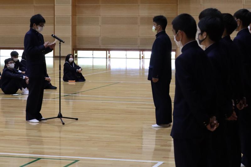 本日、体育大会の選手決めの後に結団式を行いました。本日は、団長、副団長の紹介を行いました。昨年度は実施できなかった体育大会は、今年度は5月15日(土)に予定されています。