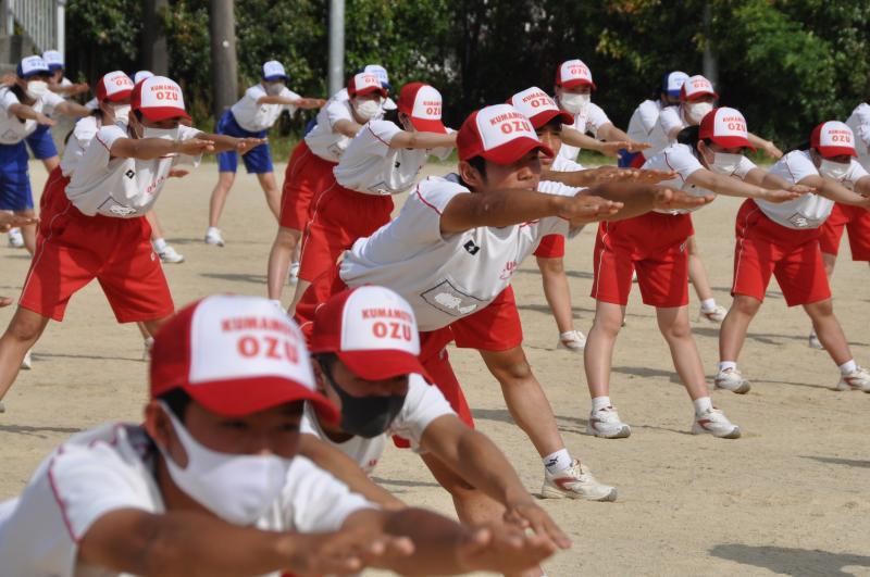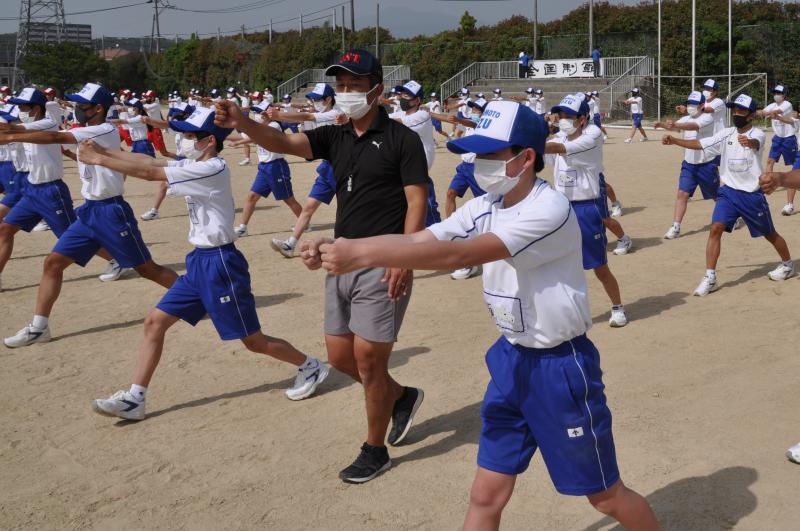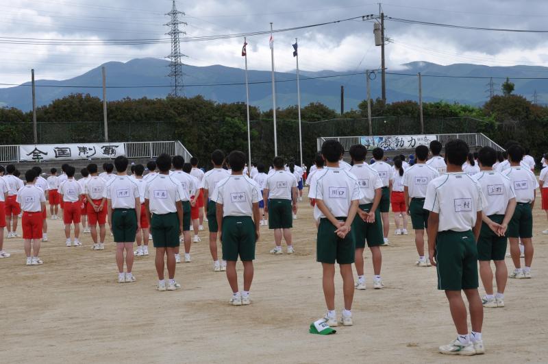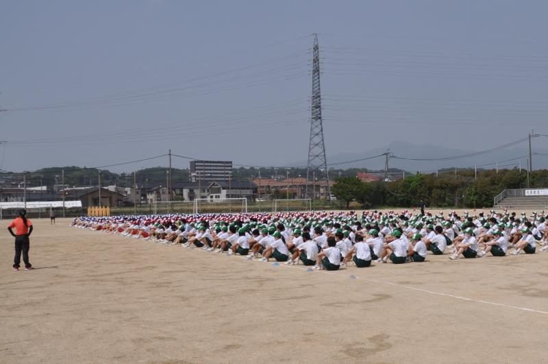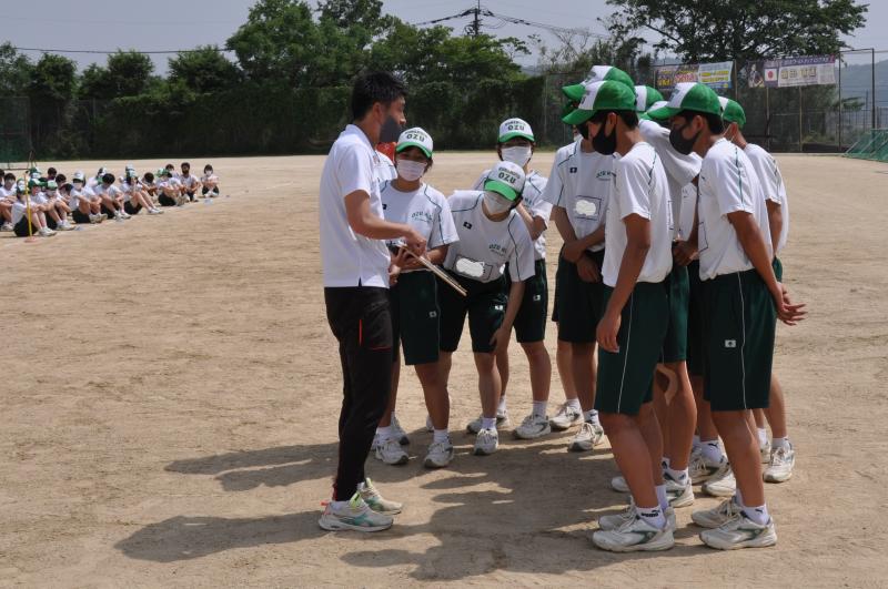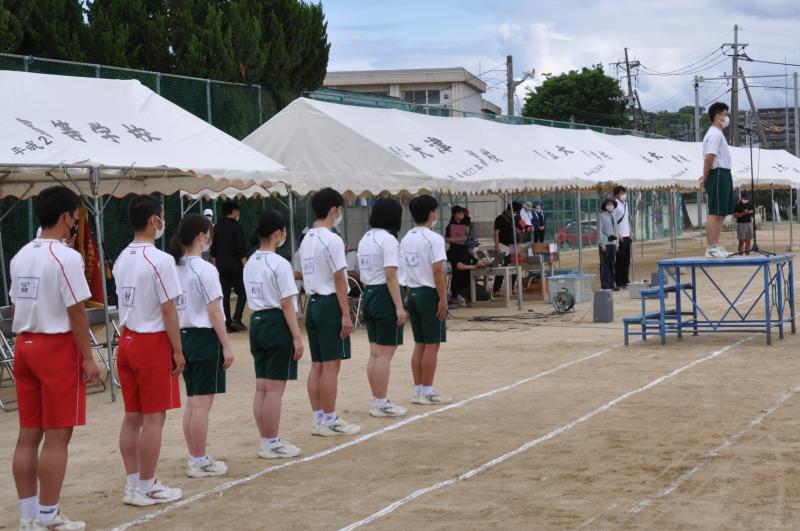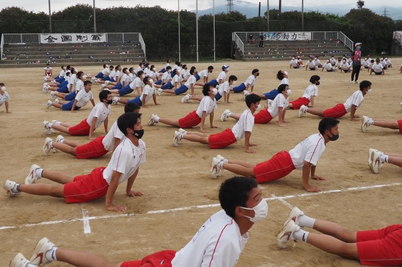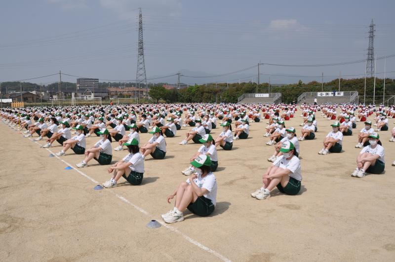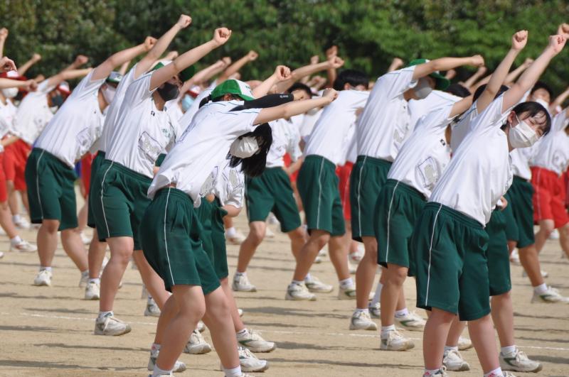 今日は午後の時間に体育大会の全体練習がありました。今年度初めて全校生徒が集まる練習です。各団毎に整列をし、大高体操等の練習を行いました。
