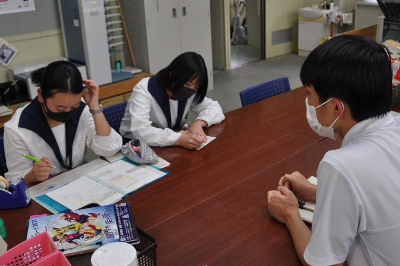 来週から中間考査が始まります。また、5月末から総文祭、総体が開催されます。今日は、中間考査へ向けての取組と総文祭へ向けての演劇部の打ち合わせの様子を見ることができました。