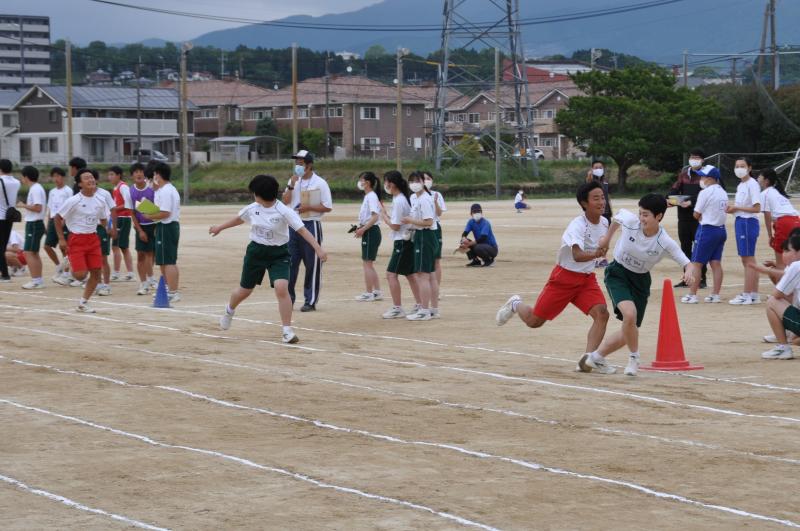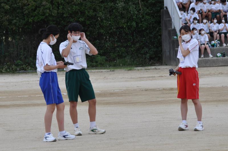 5月15日(土)体育大会を実施しました。3年生の保護者のみの参観と YouTube でのライブ配信を行いました。雨の中、開会式からプログラムを進めてきましたが、雷の音が聞こえ始めたため、1年生のクラス対抗リレーを終えたところで終了しました。3年生にとっては不完全燃焼でしたので、一部競技を後日行うよう検討しています。3年生の中には、わざと転ぶなど競技を盛り上げる演出をしてくれた生徒もいました。