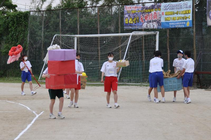 本日午後の予行練習は「プログラム2:玉入れ」、「プログラム5:タイヤそりリレー」、「プログラム6:高校総体・総文祭選手激励」を本番として実施しました。明日は、午前中に終了予定です。プログラム変更に伴う詳細な日程は、classi で報告します。開会時間を8:30からと早めていますので、3年生の保護者の方で、来校される方は御確認をお願いします。