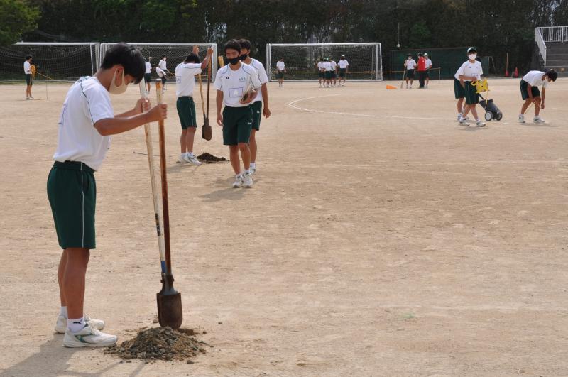 本日は、15日(土)に実施予定の体育大会の予行練習を行っています。午前中に係り打ち合わせから、プログラムに沿って招集、隊列等の確認を行っています。