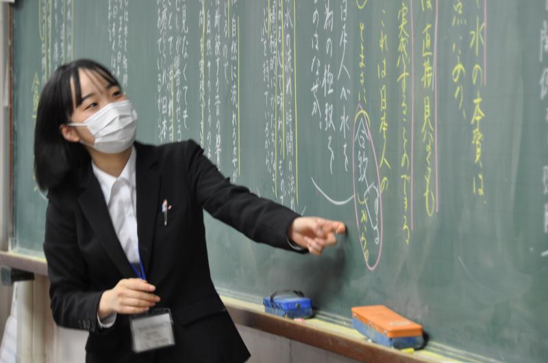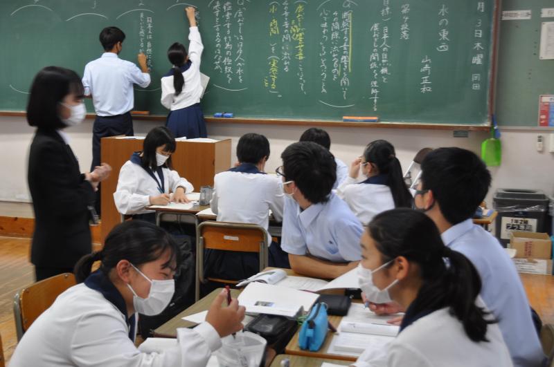 本日6限目、1年2組で教育実習生(山元さん)の現代文の研究授業がありました。多くの先生方の見守る中、生徒も山元さんも緊張していました。両隣の1年生の授業の様子も紹介します。