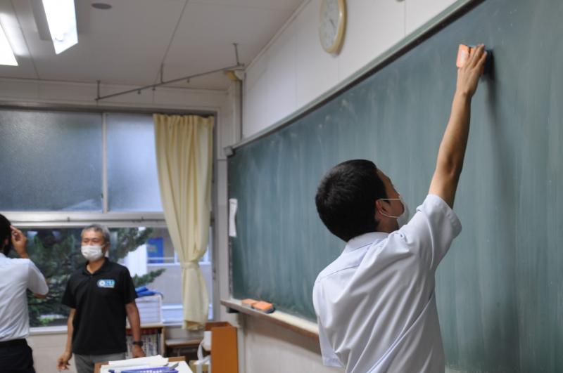 本日は7限授業です。掃除時間のない日なので、放課後日直が黒板の掃除をしてくれています。