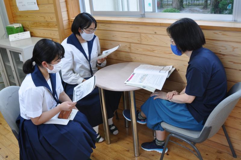 3年生だけでなく、1年生も放課後の時間に質問しています。今日は、美術部の様子を紹介します。
