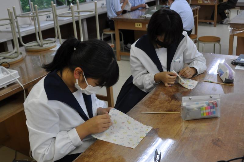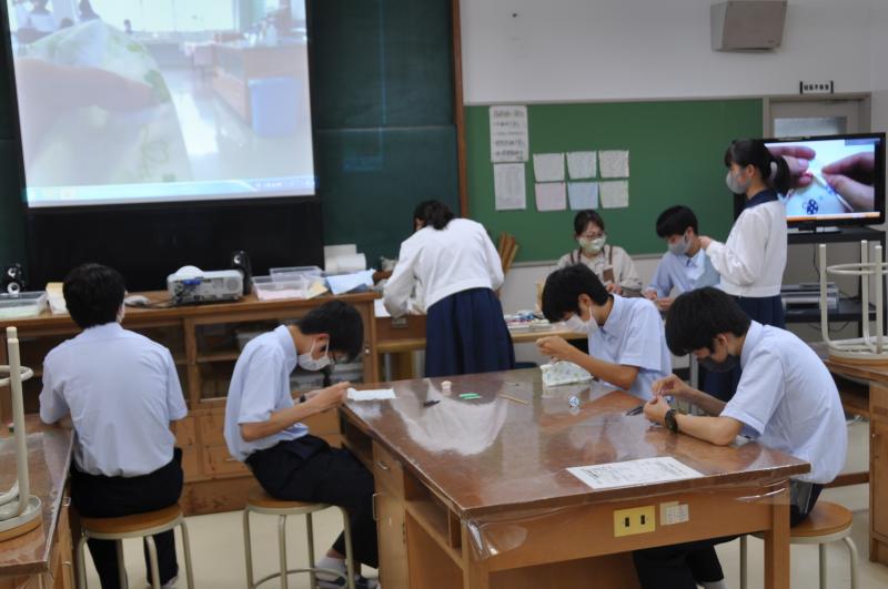 被服室では、1年生の家庭科の課題に取り組んでいます。