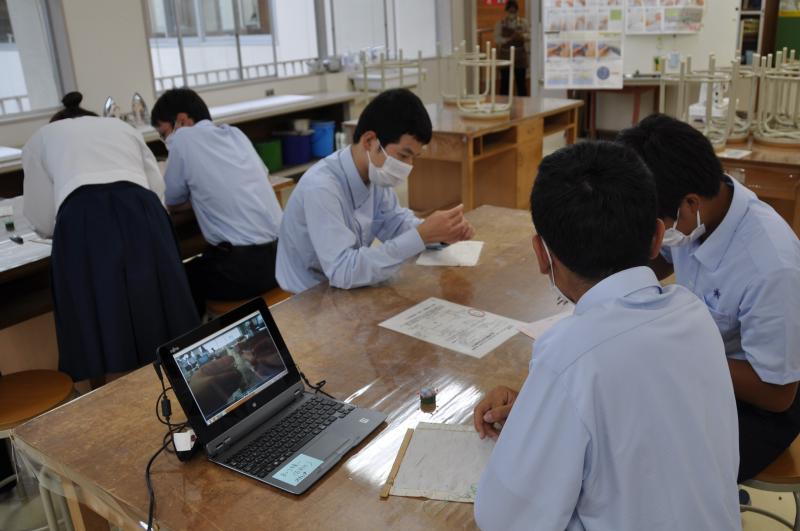 本日、5限目1年1組、6限目1年6組でオンラインによる公開授業が行われました。映像を県庁と繋ぎ、大津町の小中学校へ配信されています。