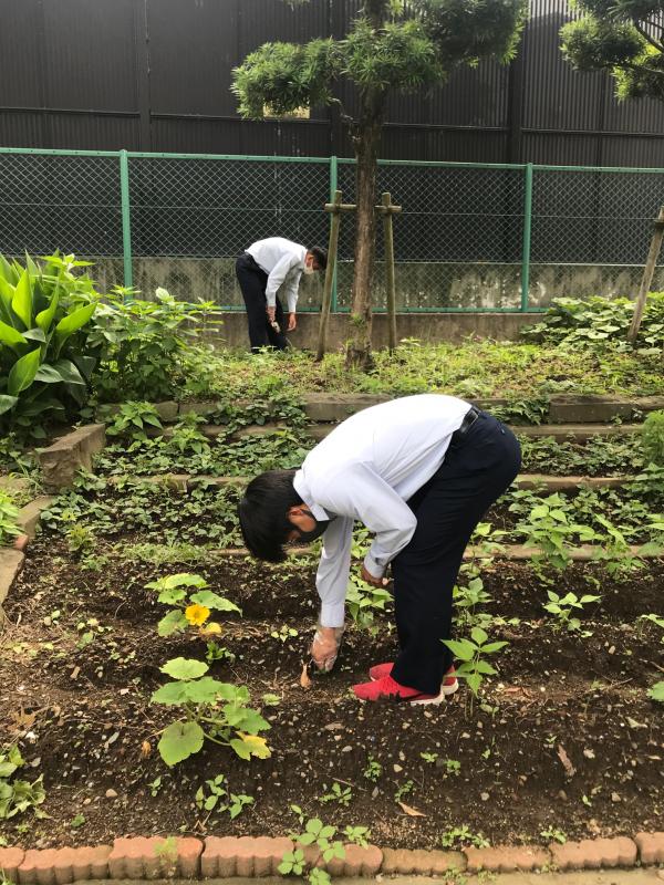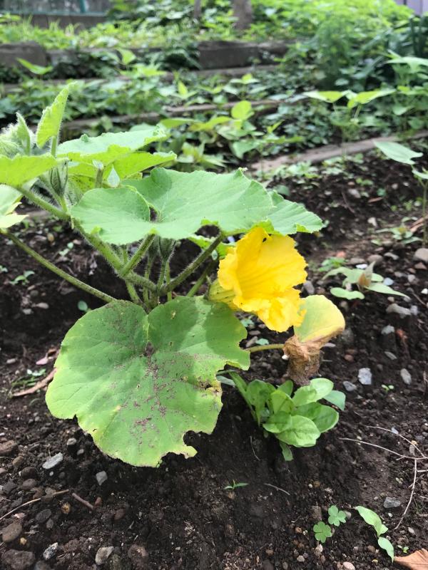 4月末に作った畑では「カボチャ」「すいか」「つるなしいんげん」「小ネギ」が育っています。今日は草取りをしました。収穫を楽しみに「つるなしいんげん」を使った料理調べをしていきます。