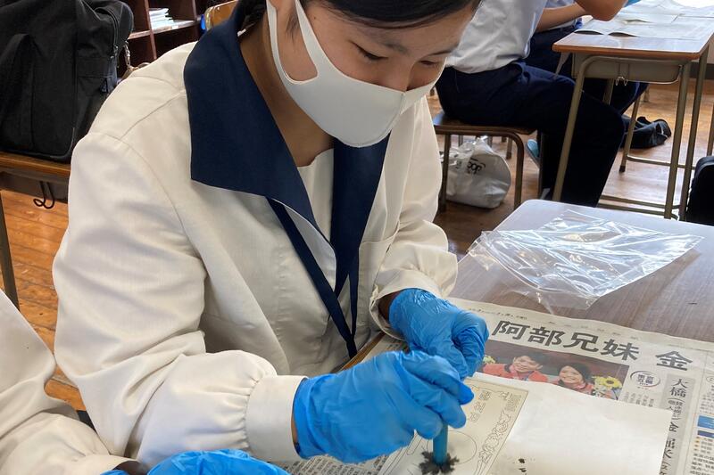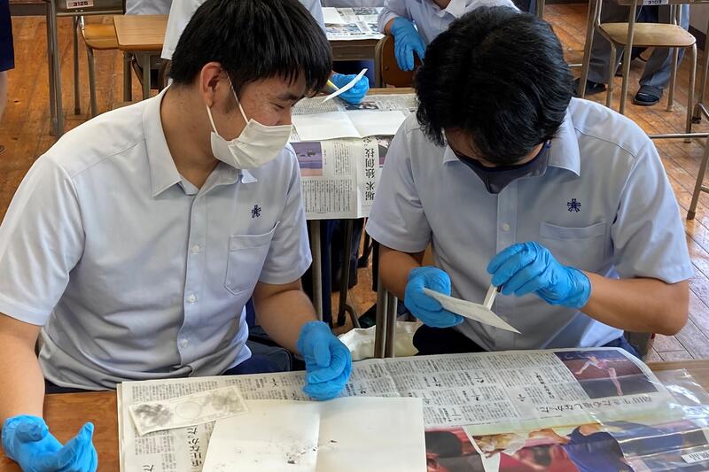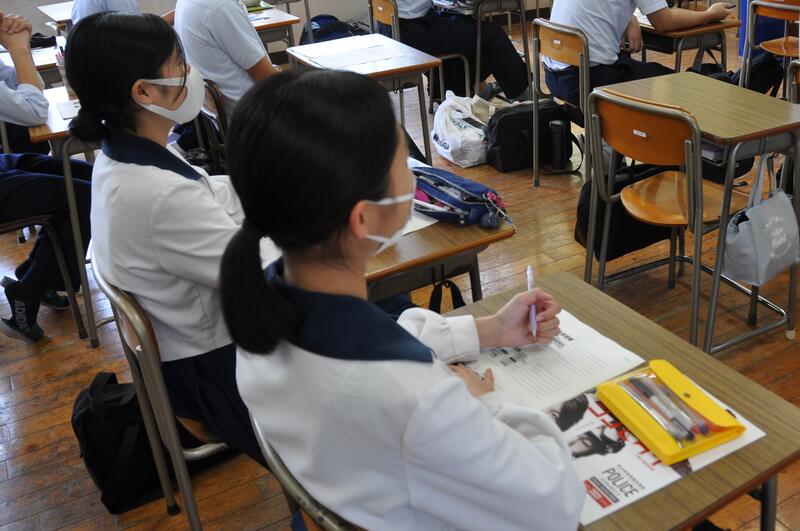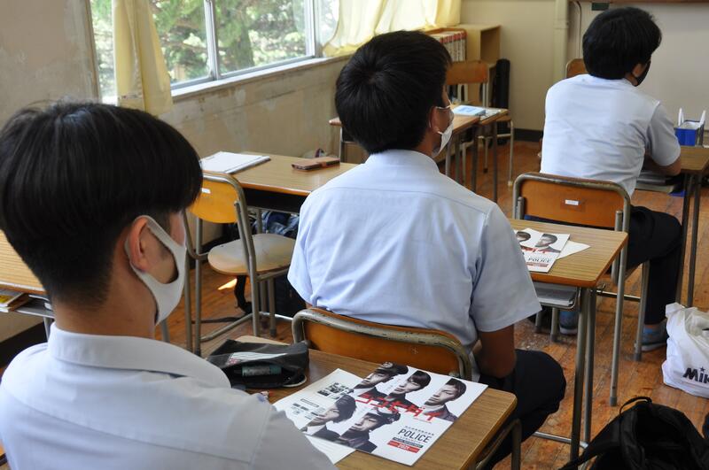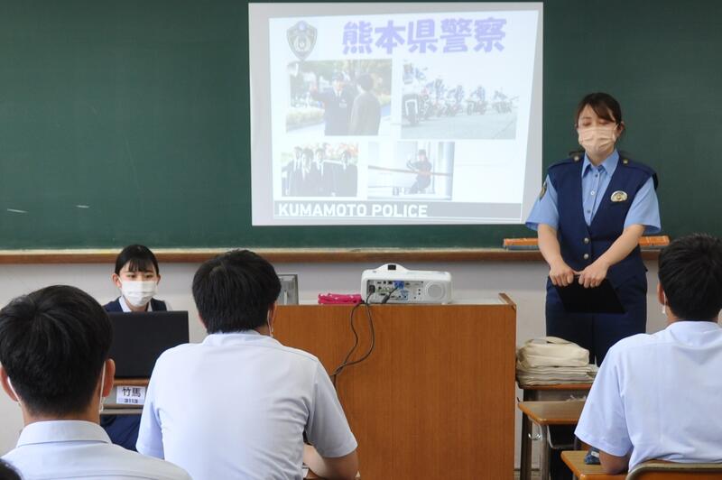 8月3日(火)に3年生公務員受験希望者に対して、熊本県警から来校して頂き説明会を開きました。説明会の後半では、指紋採取を体験しました。大津高校出身の警察官も多いと話をされました。
