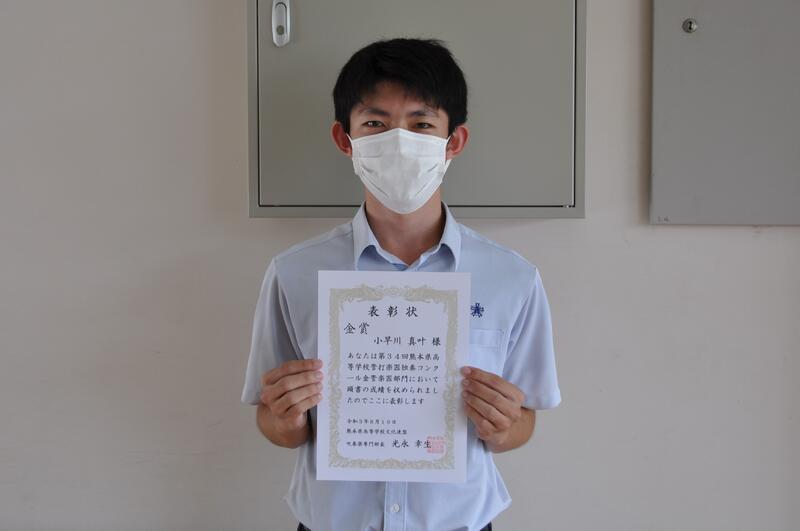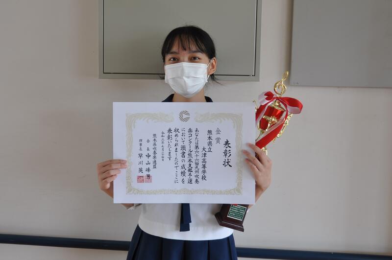 第66回九州吹奏楽コンクール熊本支部予選高校Aパート金賞、第34回熊本県高等学校打楽器独奏コンクール個人表彰及び令和3年度第1回校内ビブリオバトル表彰を行いました。
