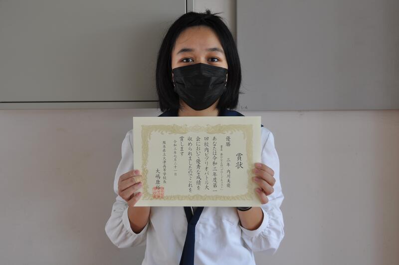 ビブリオバトル優勝 3年内川さん      ビブリオバトル準優勝 1年小林さん