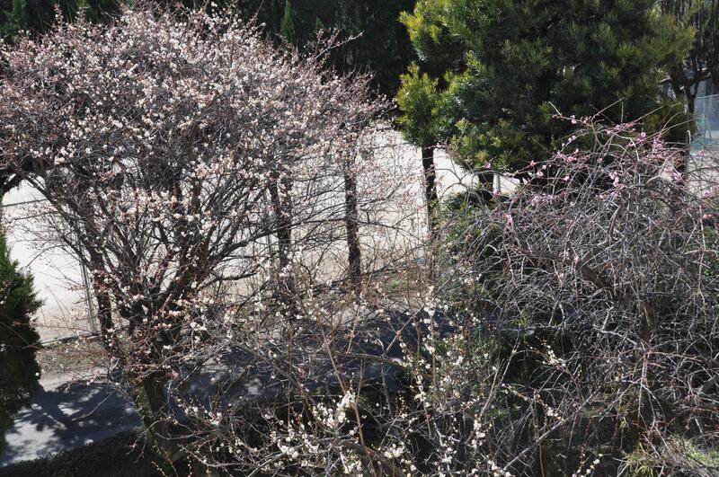 2月28日(月)暖かい日差しに梅の花が咲き始めました。今日は、明日の卒業式の準備を1,2年生が行いました。この後、表彰式、卒業式の予行が行われます。