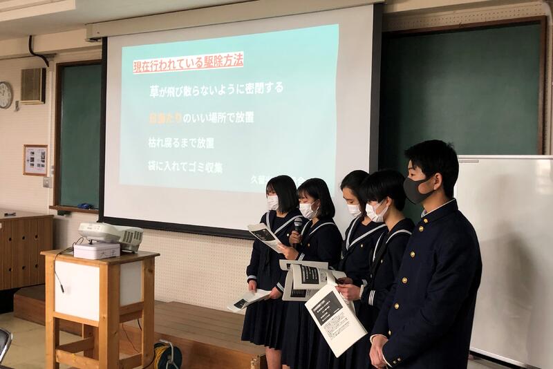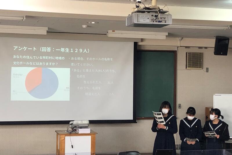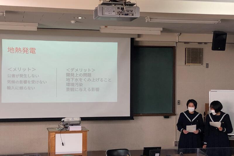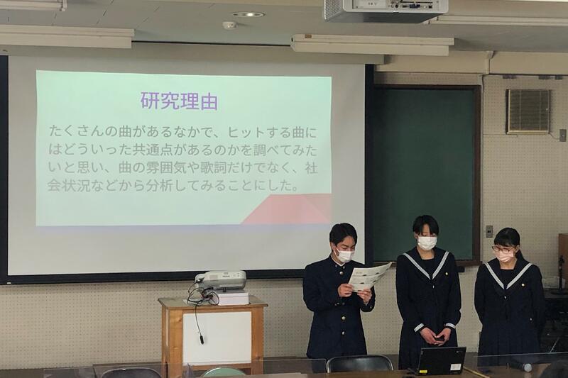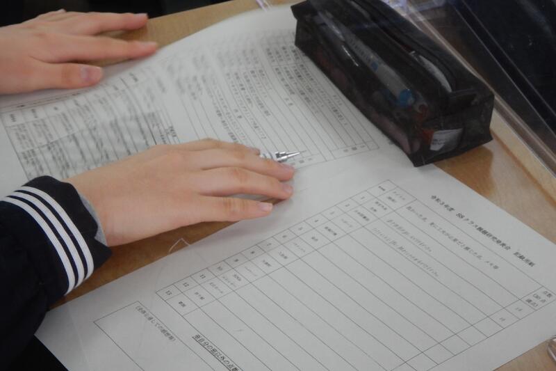 1年SSクラスでは、7月末から13班に分かれて課題研究に取り組んできました。この取組をとおして、課題発見から分析・検証の仕方やプレゼンテーション能力を身に付け、また、他のグループの発表を聞くことで、探究活動に対する視野を広げることができました。みんなでルーブリック評価を行い、結果は、