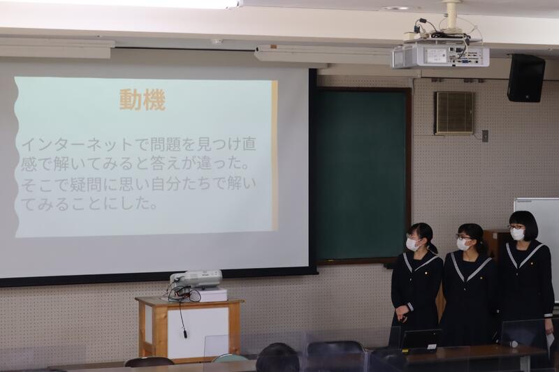 1位:スポーツの経済的規模と成績の関係について 2位:紙飛行機の滞空時間 3位:折り紙と数学 でした。