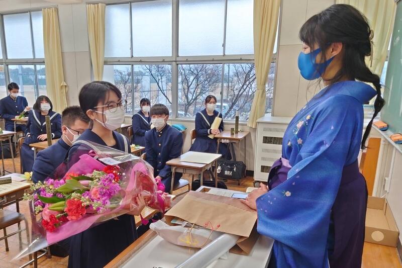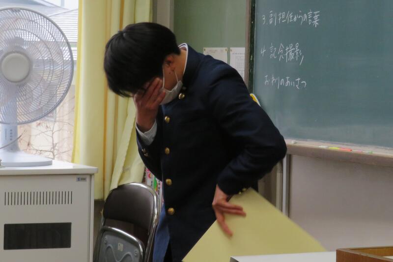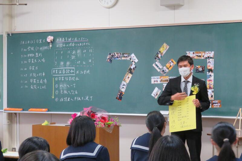 本校では、卒業式後にHRの様子を保護者の方にお見せしたいと全教室を使いました。新型コロナウイルスの感染防止対策を施し、各HRが行われる教室のとなりの教室を保護者の方が、映像で確認できるようにし、御自分のお子さんが卒業証書を担任から渡される時は、教室内に入り、保護者への手紙を読んだ後、その手紙を受け取るという演出を行いました。