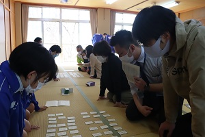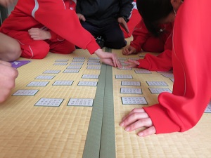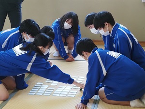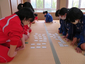 3学期のクラスマッチは、ソフトバレーボールと百人一首!で行われました。クラスマッチ前には、どこの教室でも、熱心に百人一首を覚える姿が見られました。百人一首は、先生チームも参戦して、熱戦が繰り広げられました。1,2年生だけではありましたが、両競技とも大変盛り上がりました。