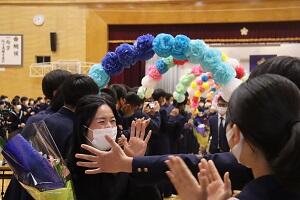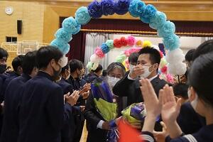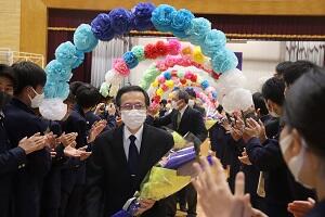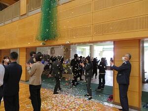 17名の先生方を生徒会のみなさんが作成した花のアーチと紙吹雪でお送りしました。