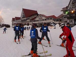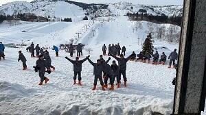 前半便(奇数クラス)、後半便(偶数クラス)に分かれて、大津高校を出発し、空路東京へ向かいました。途中航空機の遅延などトラブルはあったものの、無事に新潟県のホテルに到着し、スキー研修の1日目を迎えました。ほとんどの生徒たちにとっては、初めてのスキー体験となり、最初は恐る恐る滑っていましたが、少しずつ自分の行きたい方向に行くことができ始めました。今日は2時間のスキー研修の予定です。 明日は午前2時間、午後2時間と研修を進めていきます。