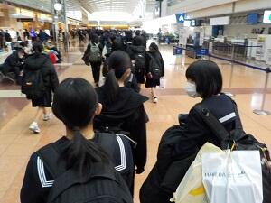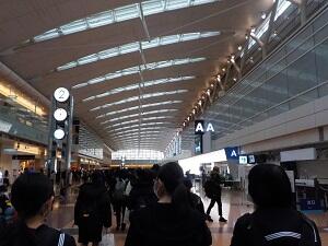 大雪警報が心配されましたので、午前中の予定を大幅に変更することになりました。お台場研修・クラス写真撮影は中止となり、航空便の遅延や欠航に備えるために、急遽羽田空港に行くことになりました。九州から来ていた他の高校の同様の動きをしており、生徒は少々残念そうではありましたが、羽田空港で使える時間が増えましたので、クーポンの使い残しをここぞとばかり活用しておりました。