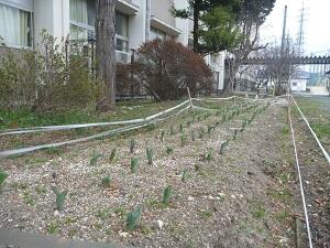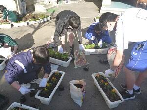 2月15日放課後、花植えボランティアを行いました。卒業式や入学式を迎えるにあたり、花を添えようと集まってくれた生徒たち。寒気の影響でぐっと気温が下がった中での作業となりましたが、プランターにパンジーやノースポールを植えた後、花壇の整備を頑張ってくれました!12月に植えたチューリップも春の日差しはまだかと顔を出し、暖かい春はすぐそこ。大高ガーデンが満開の花々で彩られる日が楽しみです。