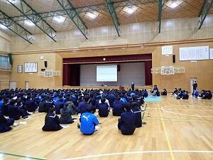 テーマは「希望進路実現に向けて」。志望理由書の意義、基本構成を中心に、今3年生0学期でできることを熱くお話していただきました。実際の大学入試についても話していただき、聞いている生徒の顔も真剣そのものでした。