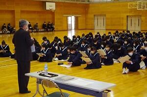 学年末考査2日目が終わり、「修学旅行のしおり」の読み合わせが行われました。