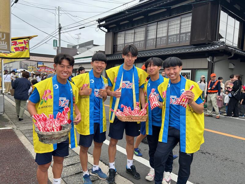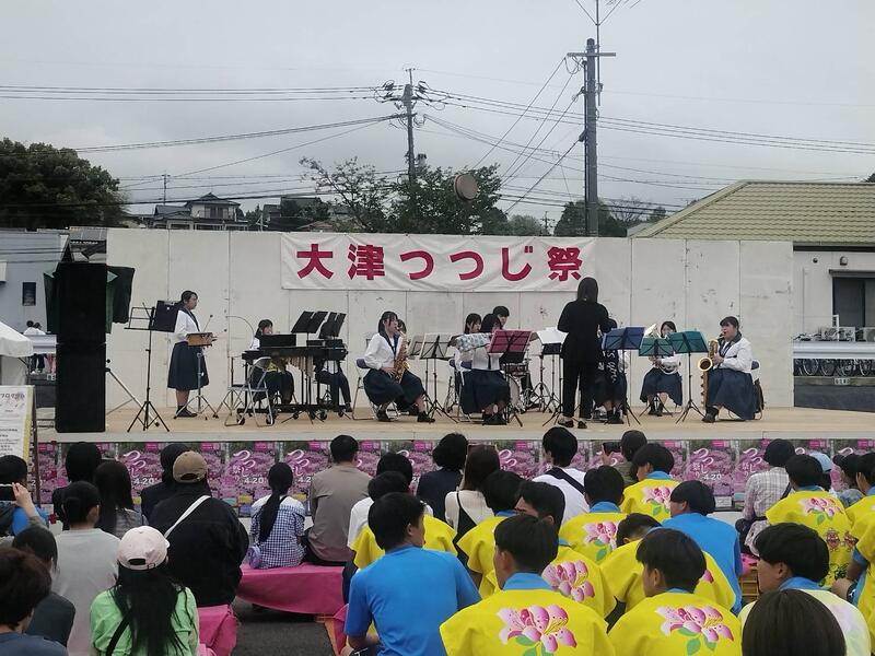 4月20日(日)大津町で開催されたつつじ祭りに学生ボランティア、美術コース、吹奏楽部の生徒が参加しました。天気は曇りで過ごしやすい気候でした。
