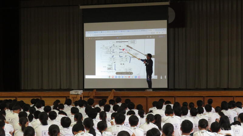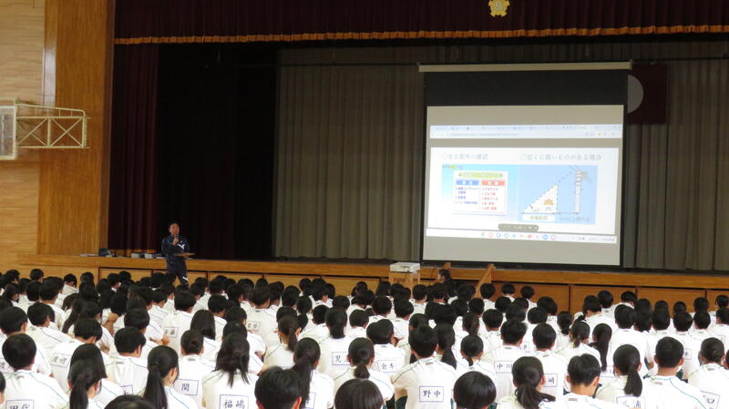 また、年度初めということで、火災等に対する校内の避難経路確認も併せて行われました。最後に生徒会長より、自分の身は自分で守るということ、家族で防災に関して話し合うことなど防災に関する呼びかけが行われました。