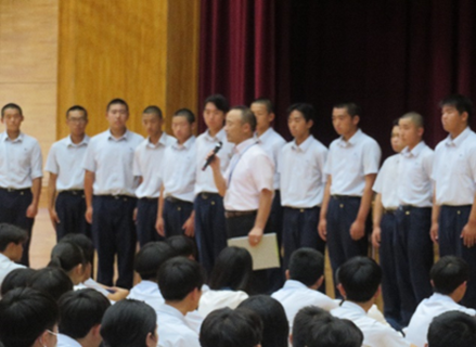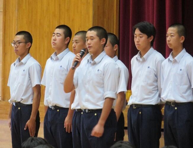 激励会では、野球部主将の大津さんが熱い思いを語ってくれました。