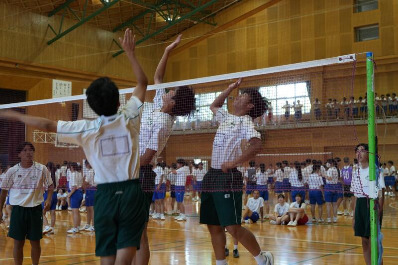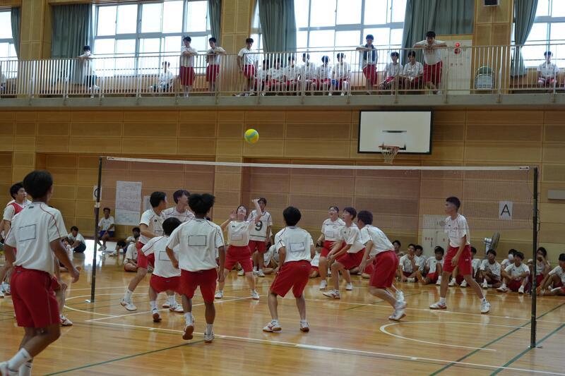7月17日(木)1学期の締めくくりとしてクラスマッチを行いました。当日の朝は晴れていましたが、午後から雨の予報もあり、雨天バージョンで開催しました。今回の競技はバレーボール!予選リーグでは各学年全クラス総当たりで順位を決めます。どのチームも決勝トーナメント進出を目指して全力でぶつかり合いました!そして勝者のみが進める決勝トーナメントでは、負けたら終わりの緊張感が漂っていました。ときには喜び合い、ときには悔しさを滲ませて、クラス全員が一丸となれた日でした。