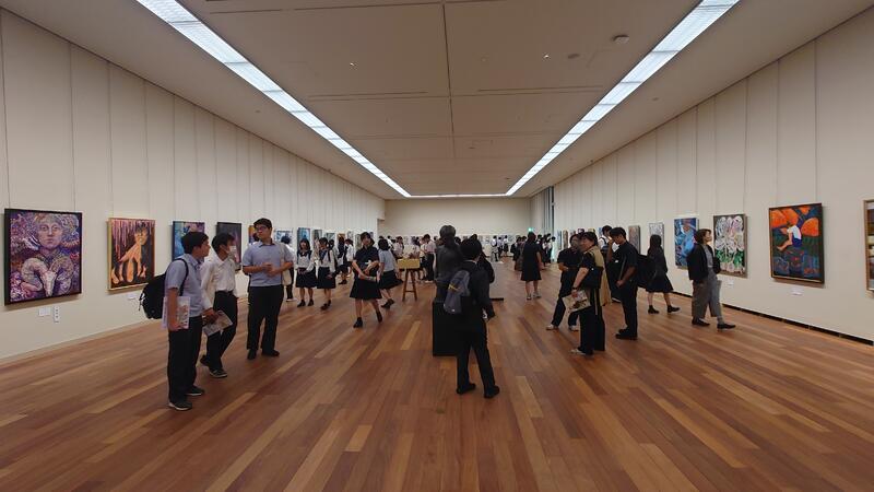 午後からは学校から外に出て美術館へ!熊本市現代美術館ギャラリーIII しまうちみか茫茫を鑑賞後、熊本県立美術館分館で高等学校美術展を鑑賞しました。高等学校美術展には熊本の高校生が出品しており、本校の2年生も出品しています。美術館で同年代の人たちの作品を鑑賞することで、自分の作品の客観視ができたり、他の人の作品から刺激を受けることで、反省や学びも多くあったことと思います。