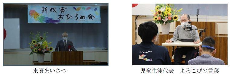 令和4年(2022年)6月13日(月)、本校の新校舎おひろめ会を開催しました。新型コロナウイルス感染症予防のため、規模を縮小しましたが、当日は、苓北町教育長様、社会福祉法人慈永会 副理事長様、はまゆう療育園園長様の他、熊本県教育庁特別支援教育課長、本校元校長、本校PTA会長に御参加いただきました。参加者みんなで新校舎の完成をお祝いしました。祝詞等をいただいた関係諸機関の皆様にも、心より感謝いたします。これからも、よろしくお願いします。