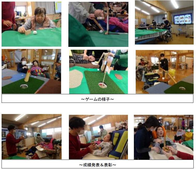 2月15日と16日に「テーブルゴルフ大会」に取り組みました。1年~3年を縦割りの3グループにして3つのコースで打数を競い合いゲームを楽しみました。各生徒が主体的に活動できるよう、打ったり、転がしたりするための補助具を使い、得意な動きを生かしてゴルフに取り組むことができました。一球打つごとに一喜一憂し、大きな歓声や残念がる声が教室に響きわたり、大いに盛り上がった大会になりました。