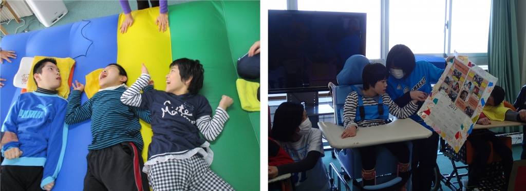 卒業・進級も目前に迫り、小学部・中学部では生活単元学習「卒業・進級おめでとう!」に取り組みました。今まで一緒に生活してきた仲間と一緒に、エアートランポリンでふれあったり、スライドで思い出を振り返ったりしました。また、プレゼントの制作にも取り組み、最終日のお別れ会では在校生から寄せ書きを、卒業生から卒業制作の階段アートとメッセージカレンダーをお互いに渡しました。2週間の活動で、学部を越えて友達との絆をさらに深めることができました。