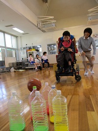 6月13日(水)に天草支援学校に出かけて、中学部の友達と交流及び共同学習を行いました。2チームに分かれてボウリングと射的ゲームを行いました。本校の生徒2人も天草支援学校の友達からの声援に後押しされて、楽しく活動することができました。ボウリングのピンや射的の的が倒れるたびに歓声が上がっていました。最後にはメダルのプレゼントがあり、笑顔で受取りました。ゲームの準備や当日のおもてなし等、ありがとうございました。今後はテレビ電話等を使って交流を続けていきます。
