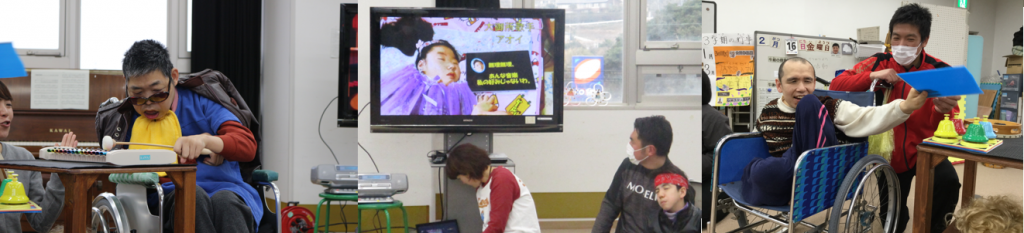 2月16日(金)に、高等部全員でミュージカルを行いました。それぞれの役に扮して、歌やダンス、演奏など、得意なことを生かして音楽の表現を楽しみました。生徒たちはにこにこしたり身体を動かしたりと生き生きとした姿を見せてくれました。訪問教育の生徒もVTRで参加し、得意な動きでセリフを言うことができました。他学部の児童生徒職員も参観し、楽しく賑やかな発表になりました。
