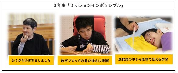 3年生は、「ミッションインポッシブル」と題して、CIAエージェントに扮した3人が、ボスからの指令を受けて、数々のミッションに挑戦しました。生徒一人一人が自立活動や国語等で取り組んでいる学習を発表し、日頃の学習の成果を発揮して課題をクリアしていきました。 それぞれ学年のカラーが出た発表で、実り多き単元になりました。