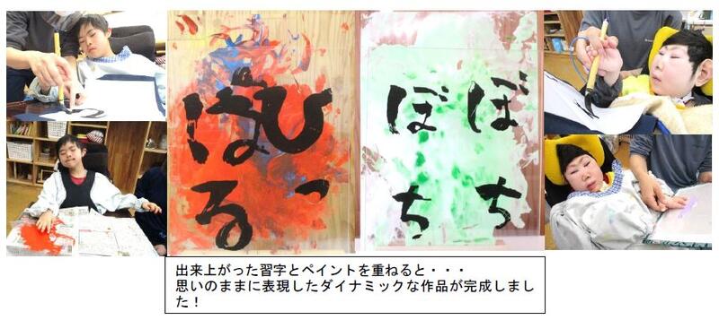 新しい年を迎え、2023年最初の生活単元学習に1月11日から19日の8日間取り組みました。単元初日は、2階の会議室に鳥居を設置し、神社の画像を見ながら、お賽銭を入れたり、鈴を鳴らしたり、初詣体験をしました。今年は、「書初め×描き初め」とし教師と一緒に今年の目標を選んだ後、習字とペイントに取り組みました。墨の匂いを香ってみたり、絵の具の感触を味わってみたりして、素材そのものに触れながら作品を作り上げました。その他、お正月遊びとして、凧揚げや大きな風船を使った蹴鞠に取り組んだり、プレイルームに作ったお正月サーキット(マット、トランポリン、回転皿、だるま落としに見立てた箱積み・箱倒し)で体を動かしたりしました。先生や友だちと一緒に活動する中で、賑やかな雰囲気や歓声を聞いて、表情が和らぐ場面もありました。