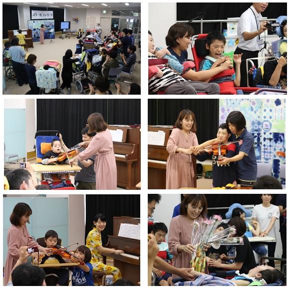 7月18日(木)に本校にてヴァイオリニストの藤本様とピアニストの光永様をお招きしてスクールコンサートを実施しました。ポピュラーな曲や有名なクラシックの曲の生演奏に児童生徒たちは、リラックスした表情や興味津々な表情で聴いていました。質問タイムでは「好きな曲は何ですか」「難しい曲は何ですか」などの質問をしながら楽しんでいました。また、ヴァイオリンの体験では、藤本様の指導のもと、楽器に触れながら音を出して音楽に親しむことができました。演奏者の方と児童生徒との合奏では、自分の好きな楽器を得意な動きで鳴らしながら演奏を楽しんでいました。児童生徒たちにとって貴重な体験になりました。