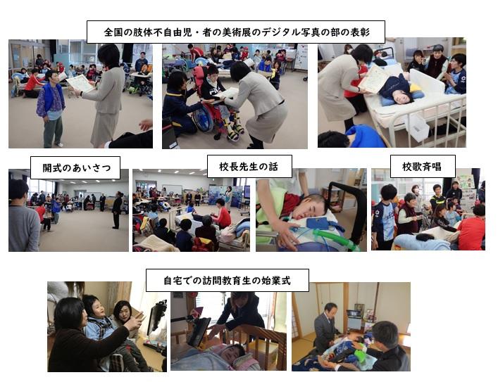 1月8日(水)に通学生、訪問教育生の9日(木)に訪問教育生の始業式を行いました。8日は始業式前に、全国の肢体不自由児・者の美術展のデジタル写真の部の表彰を行いました。高等部の3名の生徒が、校長先生より賞状を受け取り、嬉しそうにしていました。