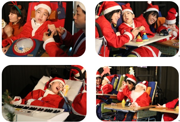 クリスマス会に向けて招待状や教室の飾りを作ったり、クリスマス会で発表する合奏の練習をしたりしました。招待状や教室の飾り作りでは使用したい材料や色を目や口の動きで教師に伝えて選び個性豊かな作品ができあがりました。合奏ではハンドベルに挑戦し、音階の違いを感じながら小学部みんなで「星に願いを」の曲を奏でることができました。クリスマス会本番では中学部や高等部の先輩方や先生方に来ていただき、練習の成果を披露することができました。