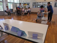 6月13日(水)に天草支援学校に出かけて、中学部の友達と交流及び共同学習を行いました。2チームに分かれてボウリングと射的ゲームを行いました。本校の生徒2人も天草支援学校の友達からの声援に後押しされて、楽しく活動することができました。ボウリングのピンや射的の的が倒れるたびに歓声が上がっていました。最後にはメダルのプレゼントがあり、笑顔で受取りました。ゲームの準備や当日のおもてなし等、ありがとうございました。今後はテレビ電話等を使って交流を続けていきます。