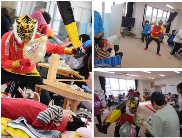 2/2(金)、節分にちなんで、全児童生徒で豆まきをしました。「おこりんぼ」や「いねむり」等の悪い風船を付けた鬼が3匹現われると、児童生徒達は驚きながらもひるむことなく戦って鬼を追い払うことができました。