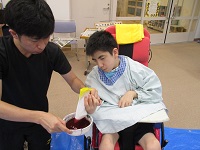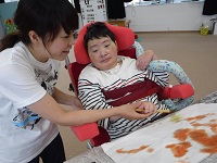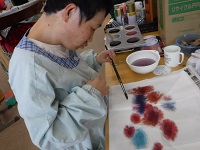 9月23日(日・祝)に、はまゆう療育園で開催される天燈祭で飛ばされる燈籠の作成に取り組みました。高等部では、美術の時間を中心に作成しました。燈籠の和紙を折って染色したり、筆で染色したりしながら、色鮮やかな作品ができあがりました。夜空を彩るのが楽しみです。
