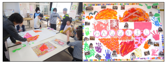 12月2日~6日は校内人権週間でした。高等部では全員で協力し合うことや学校のみんなに人権の大切さを呼びかけることをねらいとし、人権ポスターを制作しました。高等部の10人で分担して色を塗った紙を組み合わせて1つの大きなハートに仕上げました。それぞれの個性が表れたカラフルなハートができました。友達と声をかけ合いながら、生徒一人一人の手形や「みんななかよし」の文字、友達や教師の写真を貼りつけるなど、友達と協力しながら作ることができました。