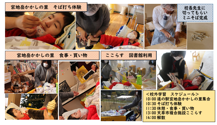 小学部訪問教育(6年生)では10月25日(木)に校外学習を実施し、道の駅宮地岳かかしの里と、天草市複合施設ここらすに出かけました。